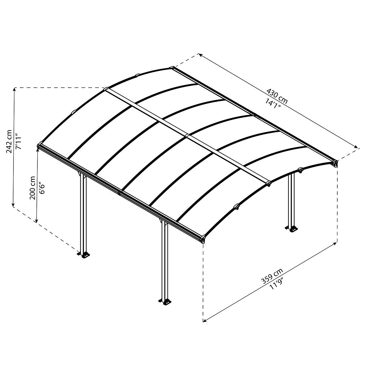 Ce carport Canopia by PALRAM ARCADIA en aluminium et plaques de polycarbonate est ultra résistant et protégera par tous les temps vos véhicules. Facile à assembler et sans entretien c’est une alternative efficace au garage. Ce carport en aluminium de grande taille peut accueillir 1 voiture.