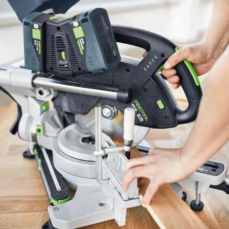 Le pack scie à onglet radiale sans fil KSC 60 EB 5,2 I-Plus est composé d’une scie radiale à onglet KSC 60 et d’un set d’energie avec 2 batteries et chargeur double.